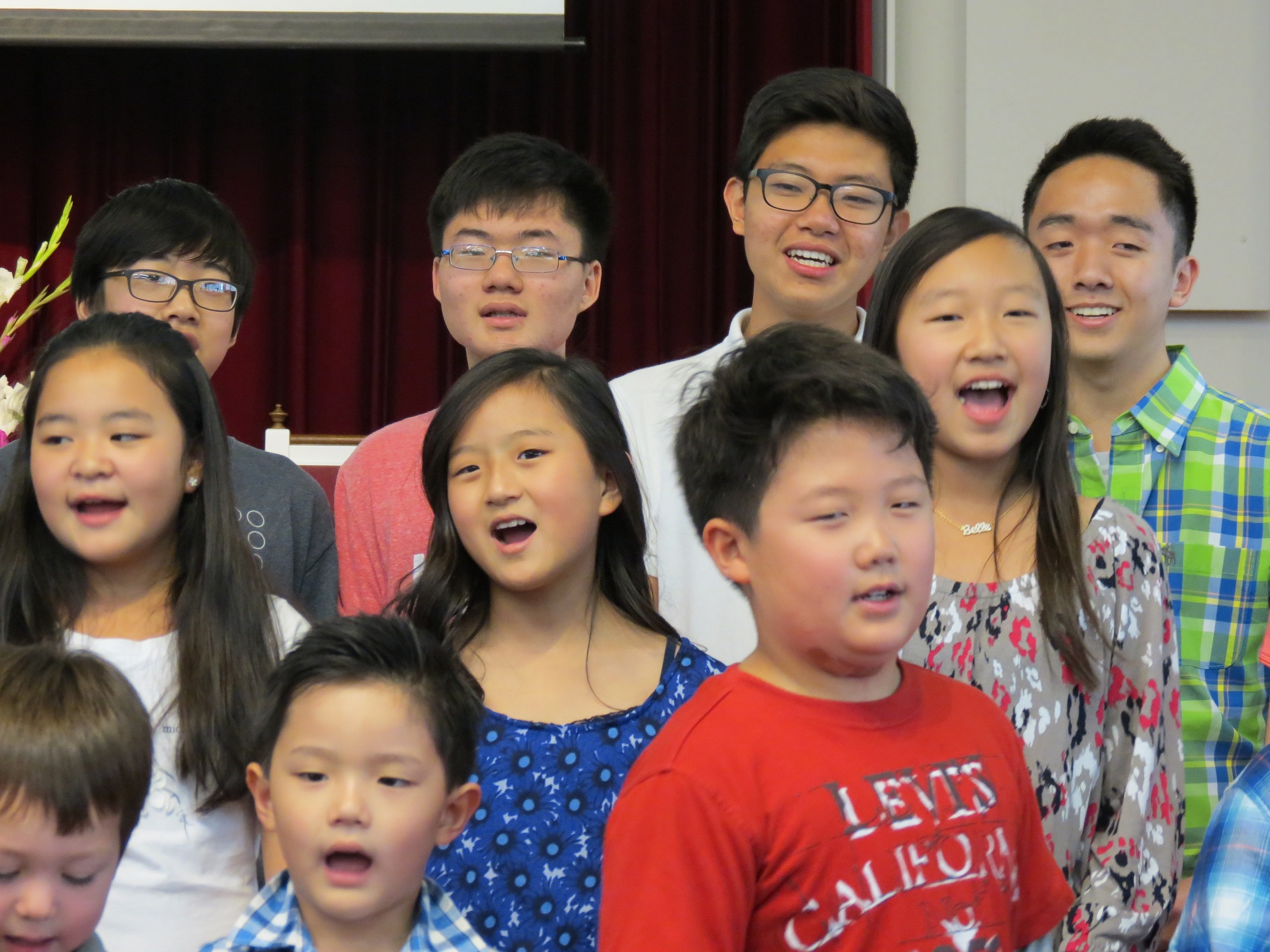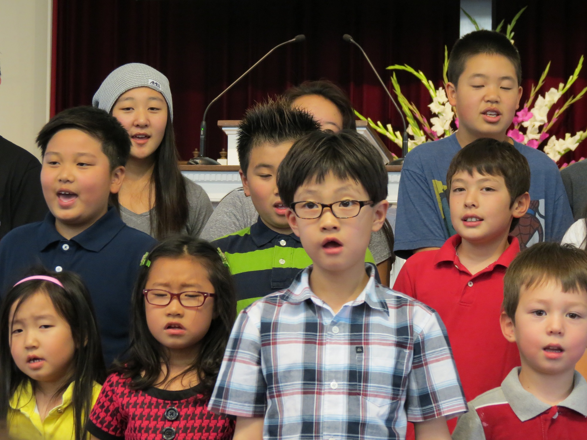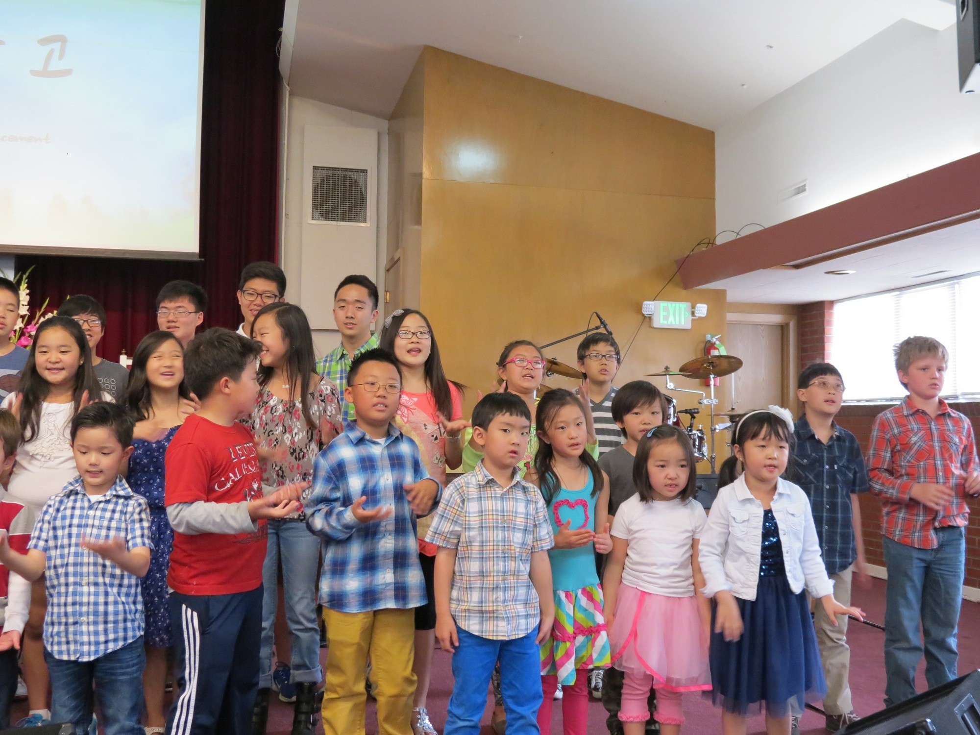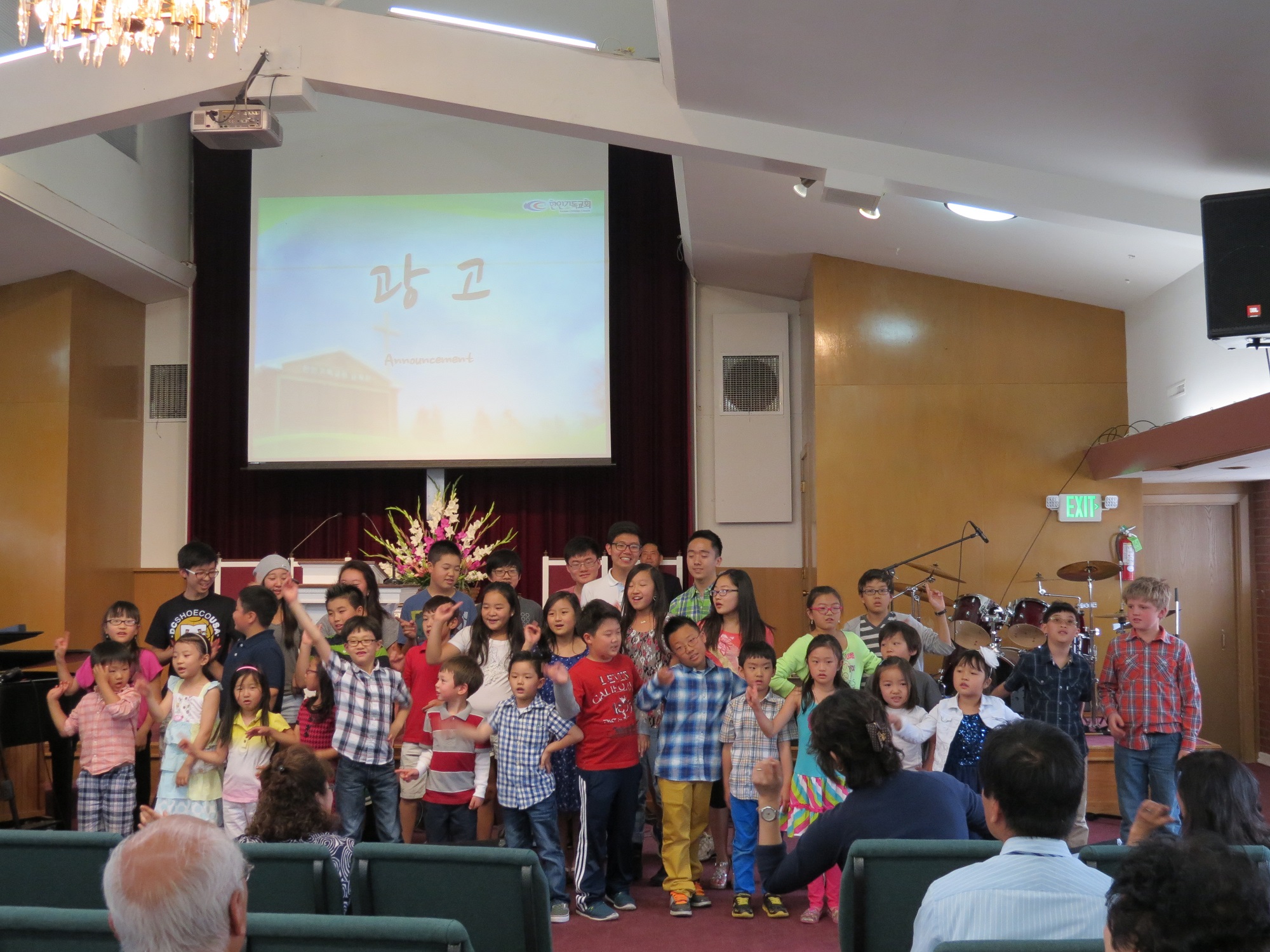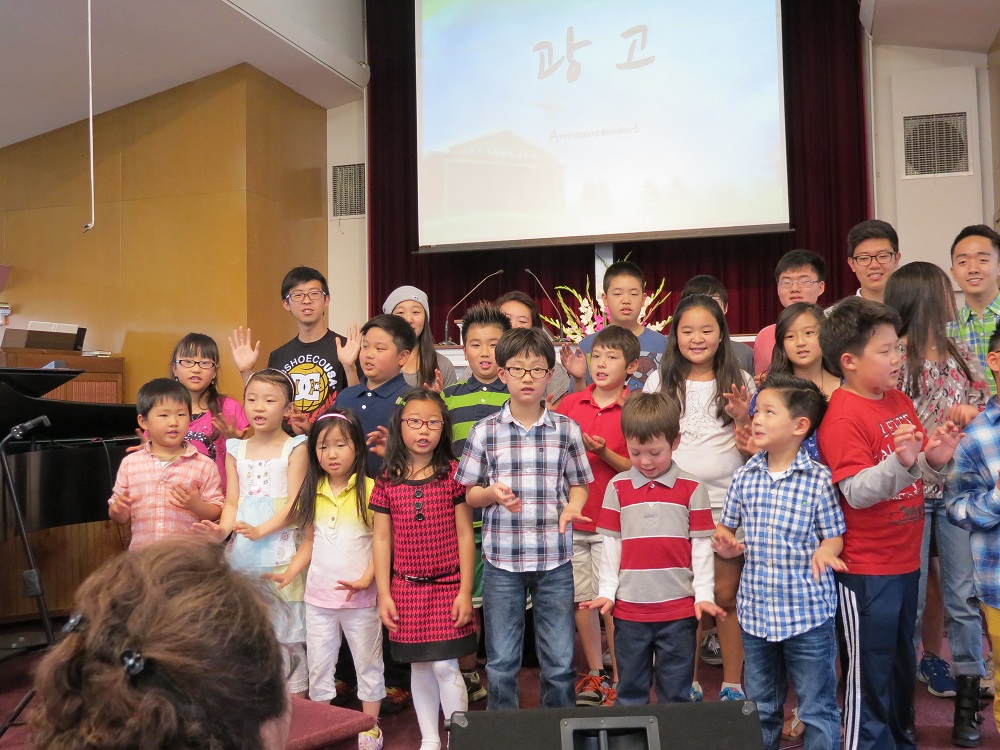 아이들이 주일 예배에 한국 학교에서 배운 노래를 성도님들 앞에서 불렀습니다.