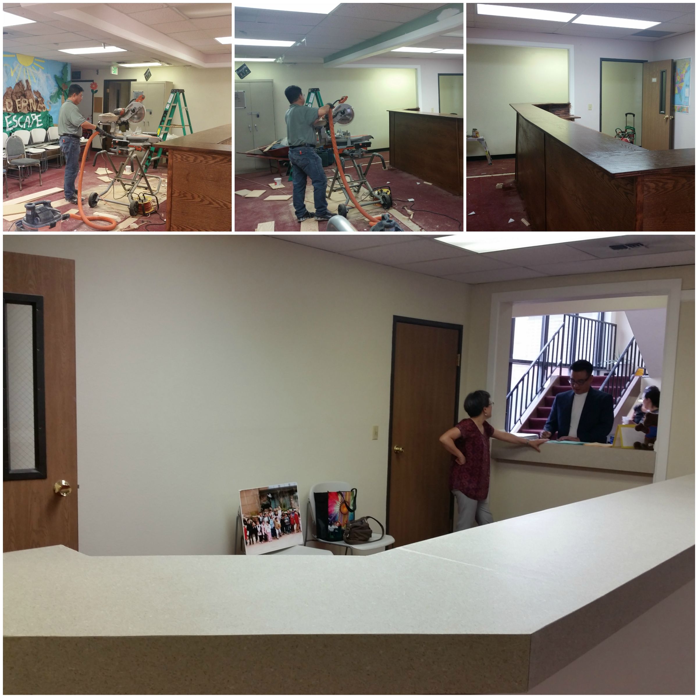 교육관 1층 공사로 훌륭하게 만들어진 카운터 - 수고 하셨습니다.